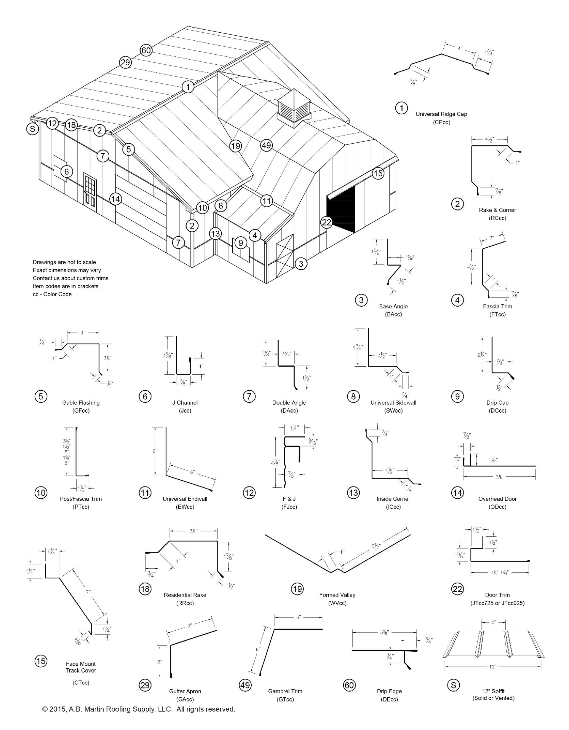 Below are diagrams showing the different types of trim we use and where they are installed. We use quite a few, although not all of these trims.